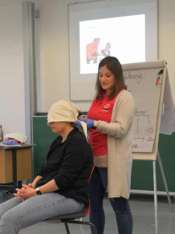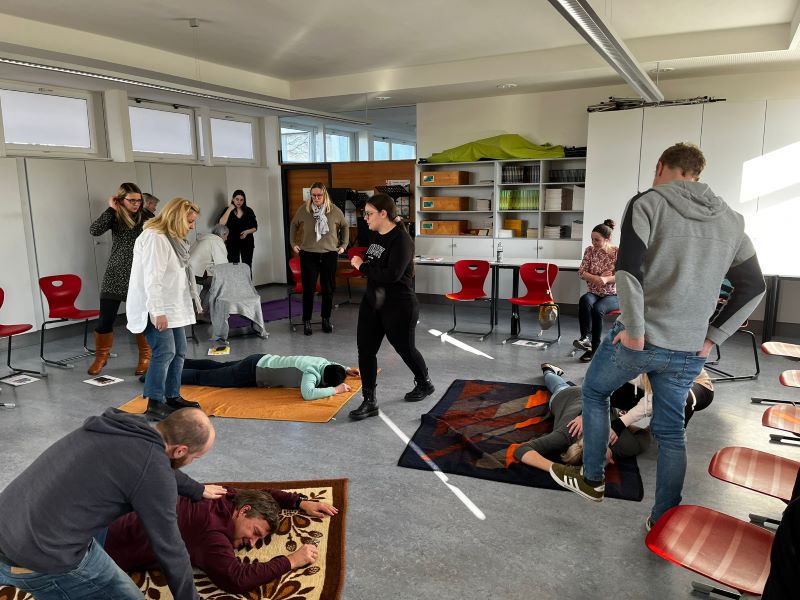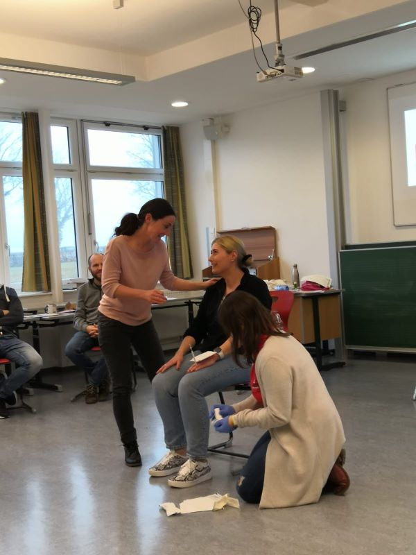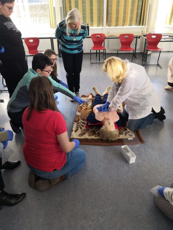 Druckverbände, Pflasterverbände, Wiederbelebung und der Notfallcheck – Dies sind nur einige Dinge, die einige Lehrerinnen und Lehrer der Mittelschule am 8. und 15. Februar erlernen, wiederholen und üben konnten.