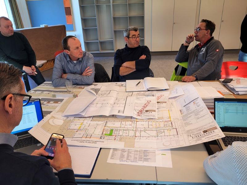 Schließlich begann der Umbau am 12.02.2024. Seitdem finden wöchentliche Baubesprechungen vor Ort in der Schule statt.